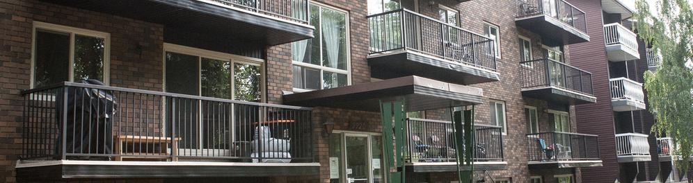 This clean, quiet 4-storey walk-up has on-site laundry facilities on 2 floors and bright, spacious suites with balconies on the upper floors.